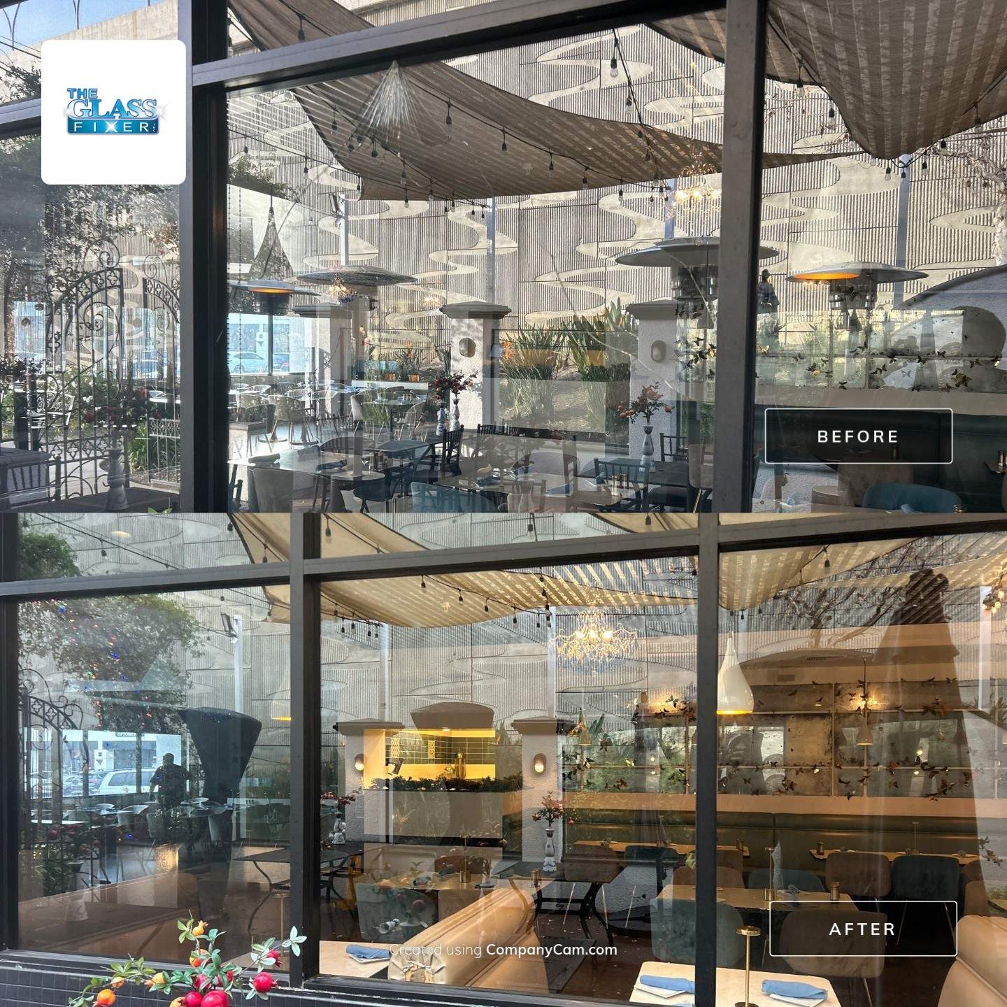 We completed an emergency commercial glass replacement for a restaurant in Anaheim, California just days before Christmas. The call came in only a couple of days before the holiday, with the client facing broken door glass set in a wood frame and a large broken window pane, both requiring prompt replacement to safely operate.