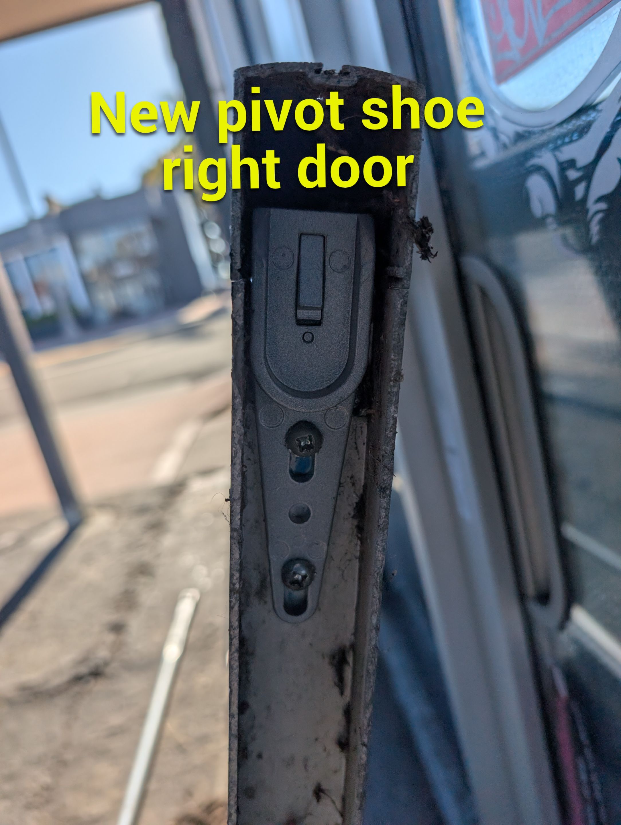 Replaced one door pivot set that had worn out from the uneven threshold.